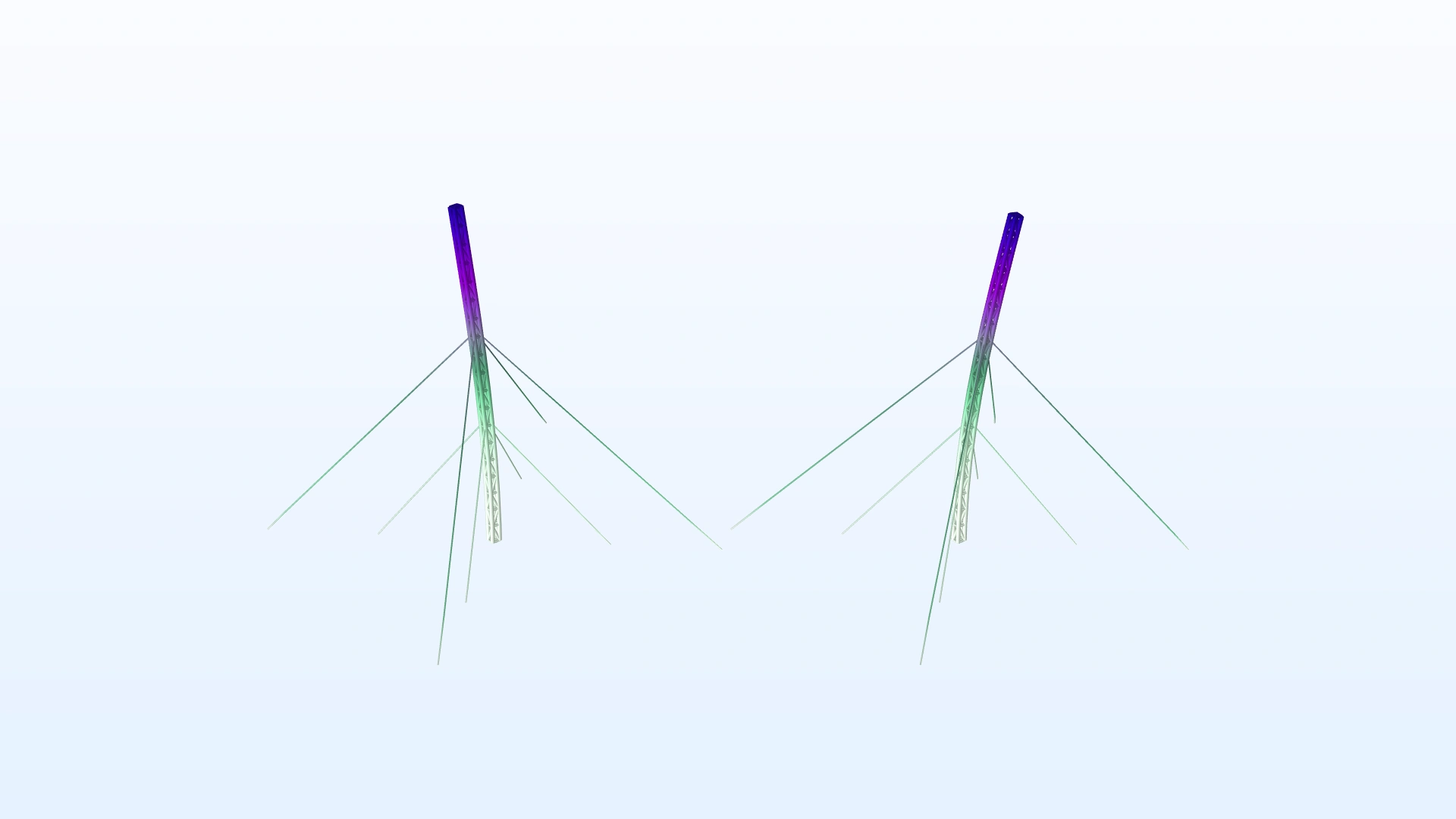 La app del pandeo lineal de una torre Truss calcula el modo de pandeo para una torre atirantada.