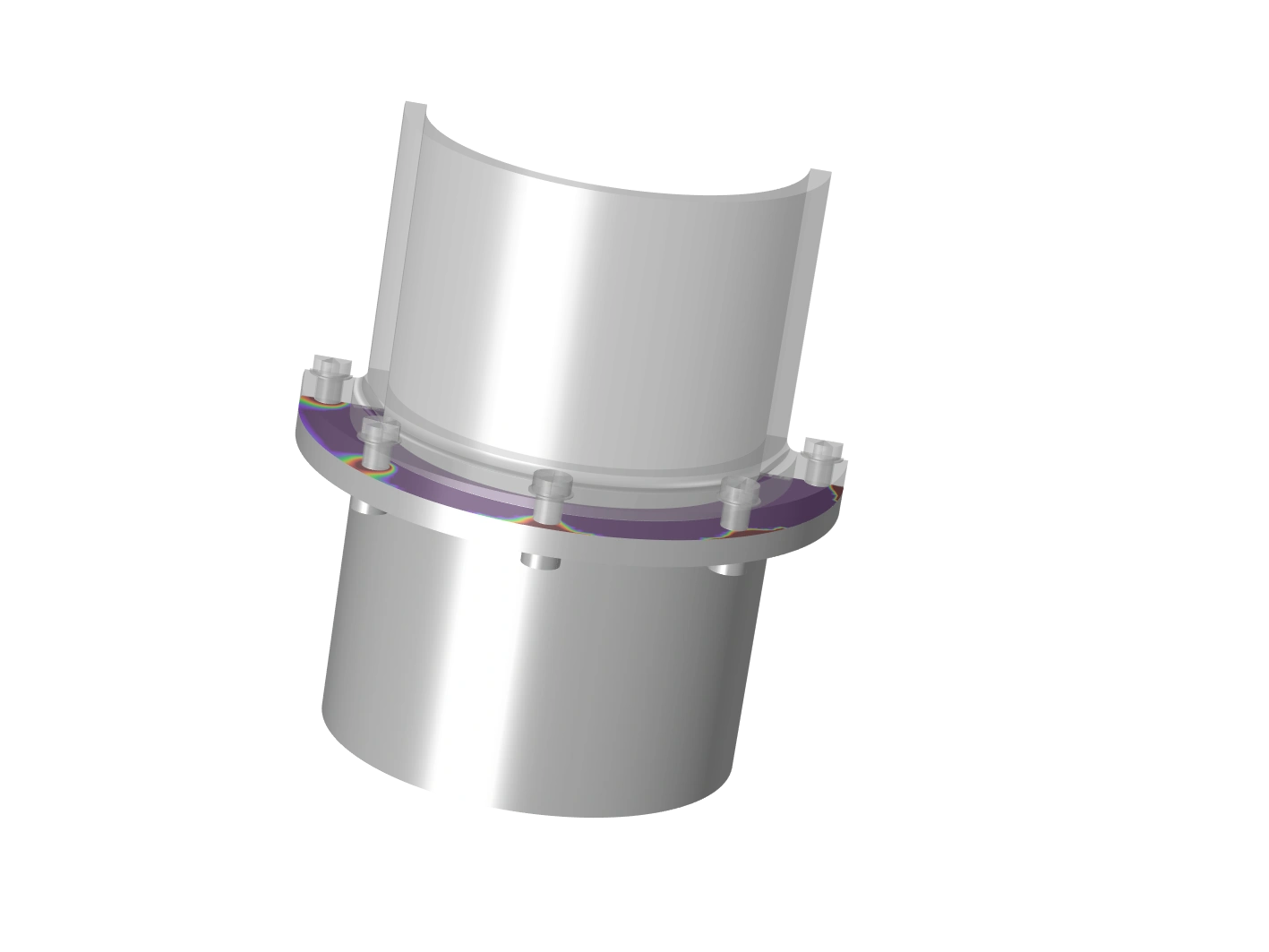 Este tipo de conexión se simula en un ejemplo tutorial de una horquilla de una mountain bike donde el tubo de la dirección se conecta con la corona. La simulación investiga la presión de contacto y la distribución de tensiones así como la fuerza y par transferible.