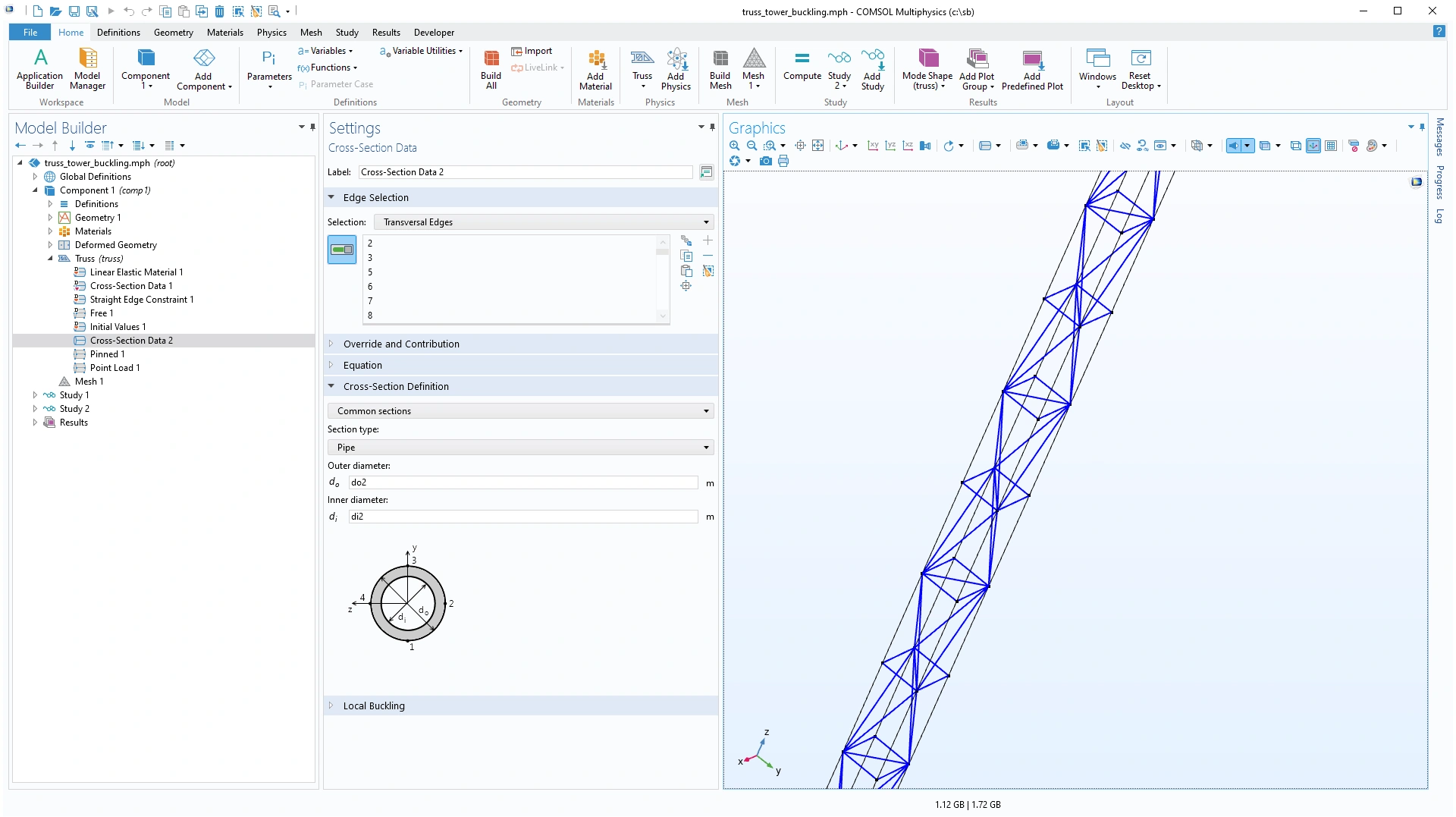 El análisis de pandeo es la búsqueda de cargas compresivas críticas a partir de las que las estructuras se hacen inestables. La aplicación simula el pandeo de una torre truss bajo cargas compresivas verticales para proporcionar la carga compresiva crítica.