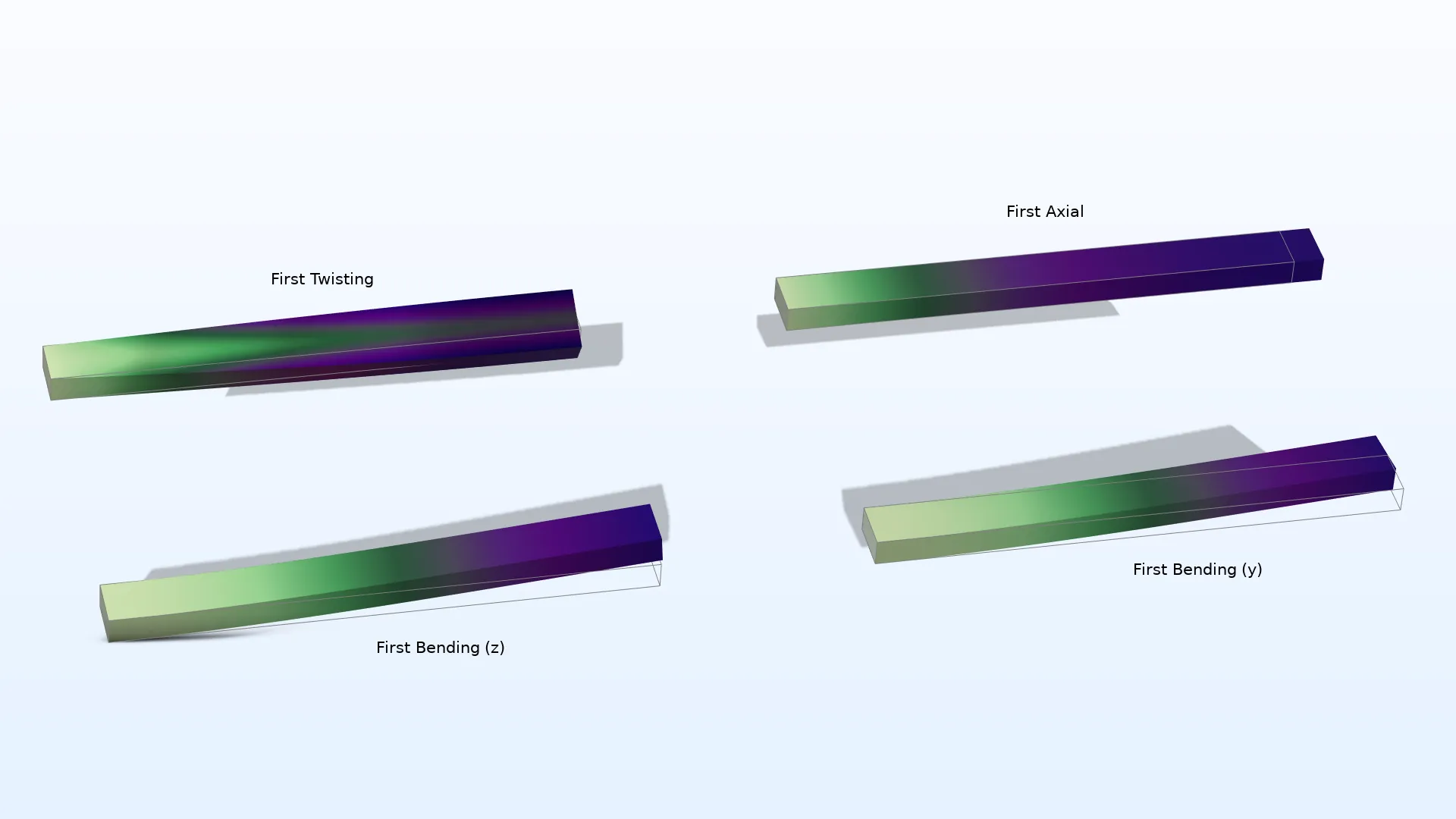 - Análisis estático, transitorio, de frecuencia propia y de respuesta frecuencial.