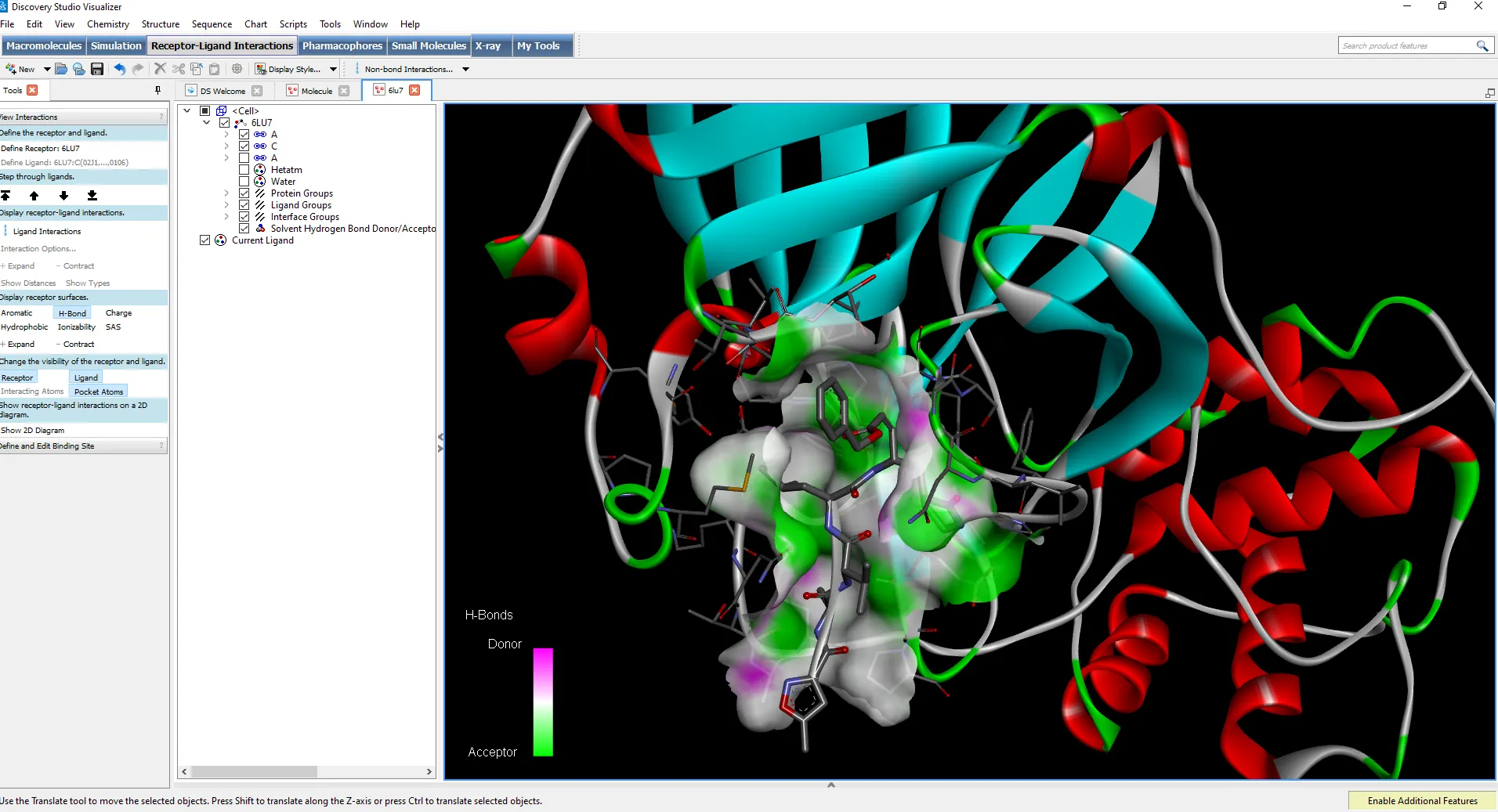 - Realice un cribado virtual de ligandos y fragmentos utilizando el motor de farmacoforo CATALYST o los enfoques de acoplamiento LibDock o CDOCKER