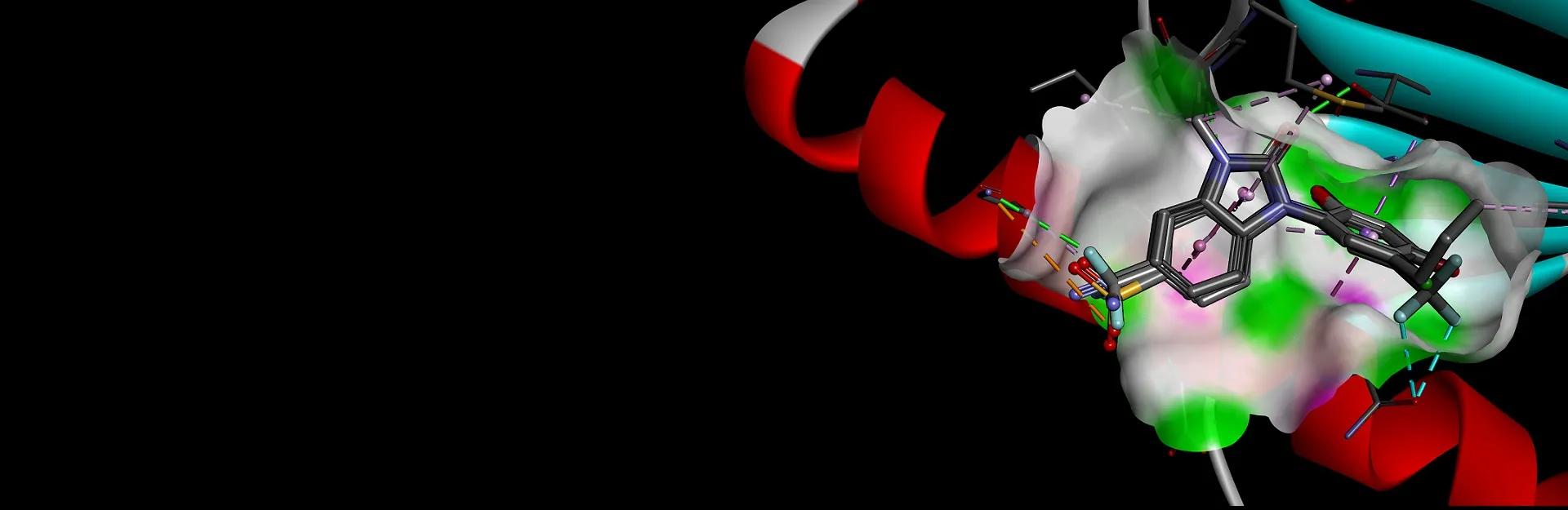 - Superficies de interacción receptor-ligando que muestran hidrofobicidad, enlaces de hidrógeno, aromaticidad y más