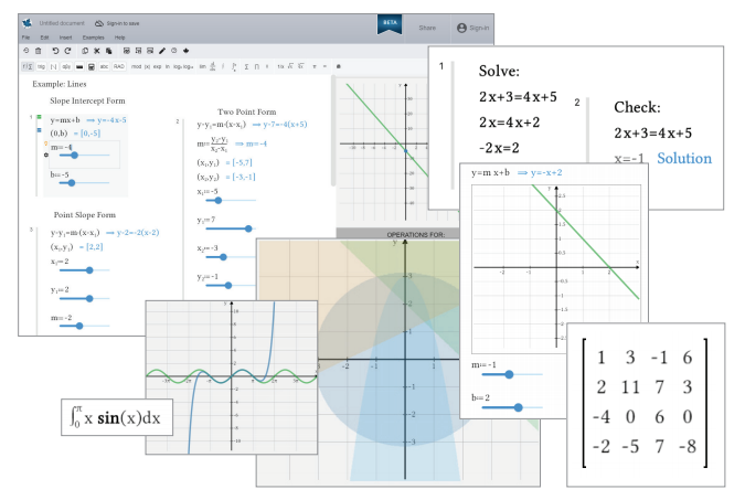 - Proporciona gráficos instructivos, cálculos, explicaciones y exploraciones interactivas, reunidas en un simple documento en línea