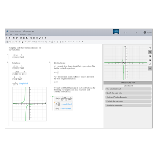 - Muestra exactamente el nivel de detalle que se desea en un cálculo, trabajando a través de problemas utilizando una combinación de pasos manuales y cálculos realizados por Maple Learn