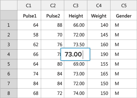 La manipulación de datos es más fácil. Por ejemplo, no se tiene que seleccionar una columna entera cuando se pegan datos desde una columna a otra, y Minitab Express advertirá si intenta copiar un nombre de columna en una celda de datos.