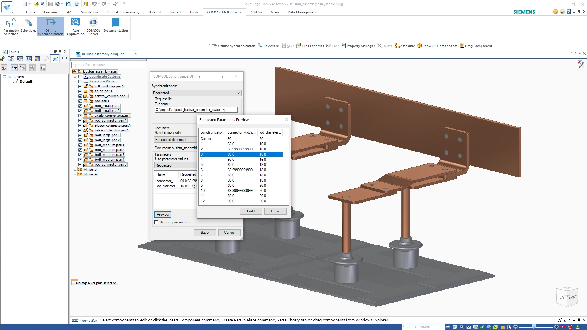CAD Import Module, Design Module y los productos LiveLink™ para CAD utilizan el motor geométrico Parasolid® de Siemens PLM para las operaciones de modelado de sólidos, reparación de geometrías y reducción. (Sin estos productos, se utiliza un motor de modelado geométrico nativo de COMSOL). El módulo CAD Import Module que viene con COMSOL 5.4 incluye una versión actualizada del motor Parasolid. Como resultado , se han solucionado una serie de problemas de estabilidad, que hacen que la importación de modelos CAD y operaciones con sólidos sea más robusta.