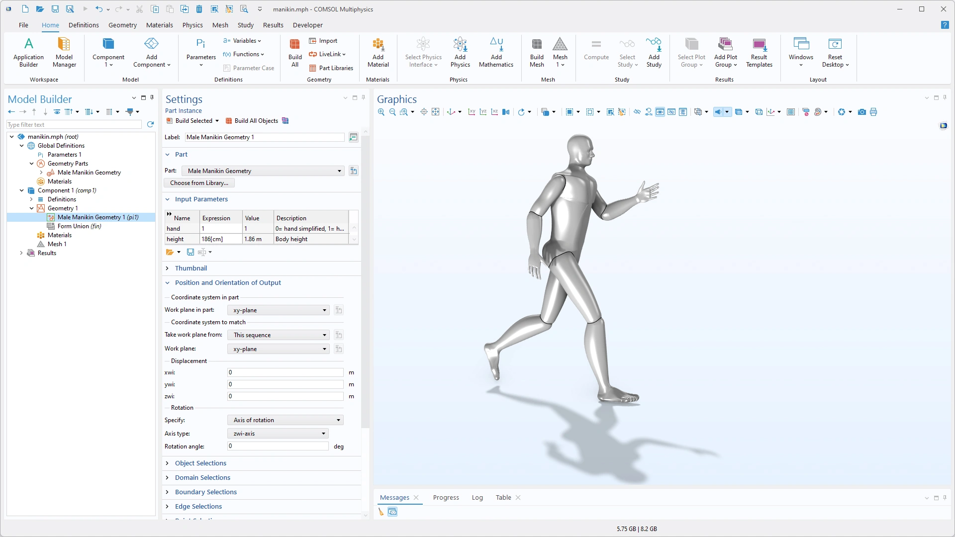 La Biblioteca de Piezas ahora incluye piezas geométricas de maniquíes humanos femeninos y masculinos con ángulos de articulación parametrizados y posiciones predefinidas para sentarse, pararse y correr. Estas piezas también permiten ajustar la altura corporal, manteniendo las proporciones básicas.