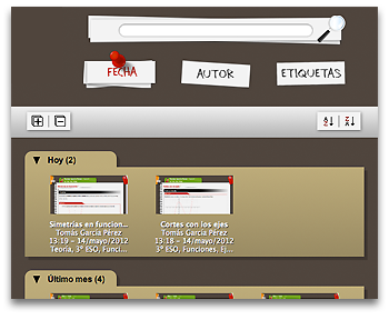 Estos ficheros se encuentran en una pestaña de la Libreta digital que no puede cerrarse llamada "Mis documentos", cuya vista se divide en dos partes: una para la búsqueda y ordenación de los documentos y otra para visualizar los mismos.