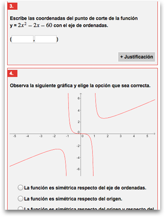 Los ejercicios que se plantean dependen mucho del tema en el que se encuentre el usuario, pero en general son propuestas que deben ser resueltas utilizando la aplicación, la Libreta Digital o el método tradicional de papel y lápiz. En algunas de las páginas de ejercicios existen enlaces para generar más ejercicios aleatorios.