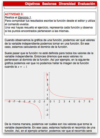 Intérprete inteligenteSe trata de un componente no visible de TutorMates que actúa en los Laboratorios filtrando las peticiones del usuario y las respuestas del sistema. De esta manera es capaz de adaptar las expresiones que se muestran al nivel adecuado y, también, ofrecer soluciones que el sistema de cálculo simbólico no ha podido evaluar. |