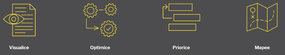 Descubra. Eleve su trabajo con el juego perfecto de herramientas que le ayudará a visualizar, optimizar, priorizar y mapear claramente el valor de su negocio mejor que nunca antes.